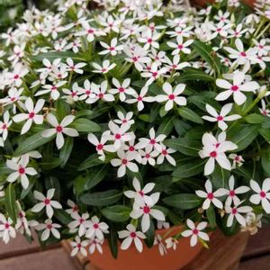 マイガーデン🌿より ミニニチニチソウ🌸 カザグルマさん♪ ちっちゃくて かわいい💕小花 たくさん咲いてます。 高温多湿に強く改良された品種らしく 見かけによらず ほんとうにたくましい👏