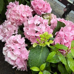 紫陽花ピンクセンセーション を地植えしたのですが、かなり激しくて…💓 一輪、まだ蕾でこれから咲きそうです💓