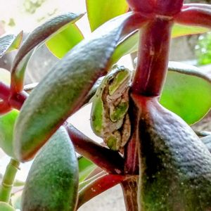 🏷️毎月6日はカエルの日 参加する🌀ケロ🐸✨👍 あらあら🤔頭隠して尻隠さず🤣 🐸🥵💦💦暑い😨なんと34度あるケロよ😵ホントに秋は来るのかい😰🌀 二枚目は昨日のこの子🐸🧐 ヒゲ生えてる?😂😂😂 ぐるぐる🌀うるさいなぁ😱🐸😤 3枚目はブラック&ブルー😍 大きくなりました🤗 4枚目はニンジャ🥷🤩迎えてから新葉が二枚目も増えて元気だよ✌️ 5枚目はGSけいこさんから頂いた子持ち蓮華💓🥰💓可愛い❤