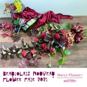ボジョレーヌーボーは、 お花を飾って優雅なひとときを🌃 2021年ボジョレーヌーボーの解禁日は、 11月18日(木)🍷 メルシーフラワーでは 「グレープフェア」と題して、 食卓を華やかに彩るワイン色のお花を スーパーのお花売り場にお届けします✨ 美味しいワインとお食事に お花を添えて優雅なホームパーティーはいかが? スーパーで食材のお買い物がてら、 ぜひお花売り場も見てみてくださいね! ※フェアおよび商品は、店舗・地域によって異なります。 ※商品はなくなり次第終了となりますので、 ご了承のほどお願いします。 ※ご自宅・最寄りのメルシーフラワーが お届けしている店舗を知りたい方は、 お手数ですがメルシーフラワーホームページの お問い合わせフォームよりご連絡ください。 インスタグラムmerciflower_officialでも、 写真や動画で情報をアップしているので、 『詳しく見る』から チェックしてみてくださいね🎵