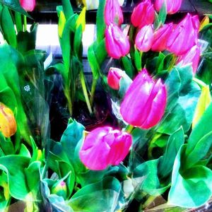 スーパーの花屋さんに置かれていた、チューリップ🌷の花です。