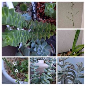 右下 トップシーダービーに 花芽が3本 暑い暑い時期に出てきました 驚きです 暑さに強いのかな? 右上 雨の多いこの夏 30年以上 うちに居て初めて 大きくなりました 朧月 これが本当の姿なのか? 左上 タッセル 少し前からハンドバックの飾りとして流行ってますね アクセサリーとしてはイヤリングが多いかな? カーテンをまとめる紐飾りにも良く使われてますね それが 元祖かもしれない 多肉の飾りにはならない😑 右下は白雪爪蓮華 今爪蓮華の中では1番綺麗 暑さに強いのか? 白雪様なのにぃ?