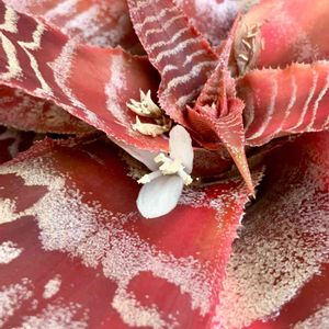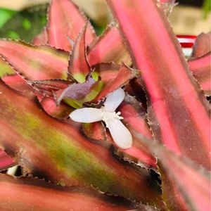 おはようございまーす^^ 令和初日は冷たい☔の日となってしまいました😢 クリプタンサス・ビビッタタス・レッドスターの花が咲きました。 ビニールの作り物のような派手色と質感の🍂に比べとても小さく控えめな🌺です。 それでは、令和も素敵な時代でありますように🙏