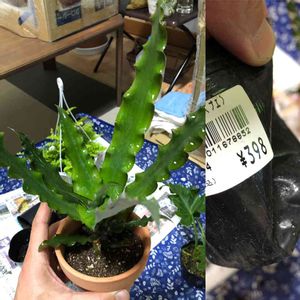 この子も今日のお土産🌱😉 クリプタンサス(๑و•̀ω•́)و 男前ね𐤔𐤔 足元に隠れるようにいたね~ | ᐕ)⁾⁾ 見逃さなかったよ、398円(ノ≧ڡ≦)☆