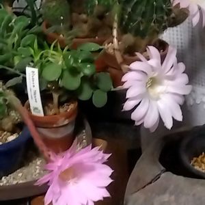 クガイソウ、雨の朝咲いています🎵 サボテンが沢山咲きます🎵 左これから咲きます、中央昨夜から咲いています🎵 奥咲き始め😊 夜咲きですから、雨にあたらないように室内に移しました❗️