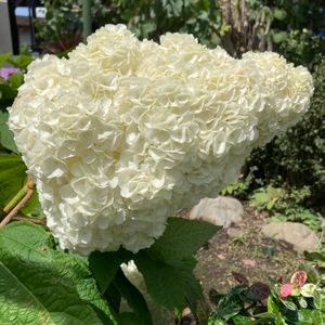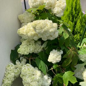 カシワバアジサイ ハーモニー もこもこのソフトクリーム🥰 今年も咲きました💕 去年、強剪定したため 今年は花が咲かないかも…と思ってたけど しっかり咲いてくれました🙌 花数は少ないけれど😂 意外と花が重たくて いつも倒れるんですね😅