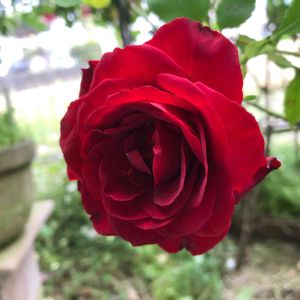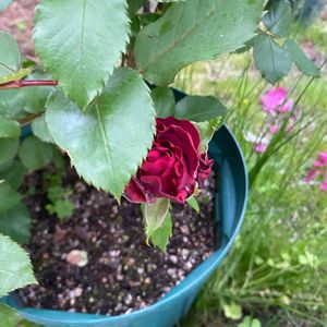 オマージュアバルバラ🌹✨ 深紅のバラ🌹✨ 赤い薔薇はお庭に居なくていつかは迎えたいと 二週間前のセールで候補の中の...いえいえノーマークでした私 見る目が無かったです私(´▽`;) '`'` 樹形コンパクトでバランスが良く特段剪定を気にせずともよく鉢栽培向き 耐病性も極めて強い セルフクリーニング機能を備える 初心者の私向きなバルバラさんでした🔰 今週もスタートしました!暑い日になりそうです(๑°⌓°๑) 今週もどうぞよろしくお願いします♡♡