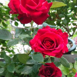 🌹今日のマイガーデンより🌹 デルバール オマージュ ア バルバラ 情熱的な深みのある赤バラ🌹 耐病性も強く! 花つき、花もち抜群! 素敵な薔薇ですよ〜✨✨