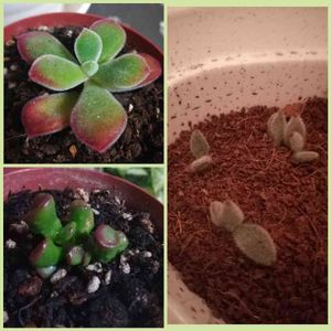 根っこ出た!!右側のもけもけ赤ちゃんはいただいた寄せ植えの中に埋もれていて、カラカラになってました。なんじゃこりゃ?ポイッ!っとしたけど、やっぱり拾ってずっと色んな鉢の端っこに挿され続け、やっぱりポイかなー🤔と悩みながら眺めてたら、2・3日位前から毛並み?が明らかに良くなってきて、ポイしなくて良かった(;゚∇゚)笑 福兎耳かなぁ…
