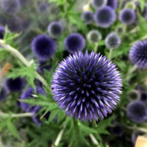 ルリタマアザミ(ベッチーズブルー) 集まった小さな花はまだ蕾 吊るすと可愛いドライフラワーに なってくれます💜