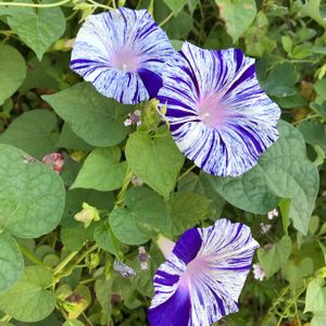 おはようございます。 今朝は職場のボランティア作業で、 飯綱山公園の草刈りでした。 植栽されたツツジが見えないほど ブタクサなどのツル植物で覆われていました。職員200名ほどで1時間、皆んな汗だくで頑張りました。 この朝顔は、毎年零れ種で咲いてくれます。変わった色ですね💕