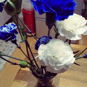 雨☔️ 昨日、何を思ったのか主人が花に水やりをしてました。雨…やっぱり……😓 ちょっとした我が家のジンクス お察しください😅 青いスプレーカーネーション、綺麗です😍
