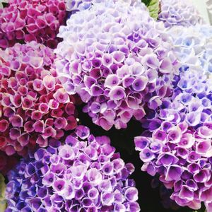 変わった紫陽花を買って来ました。 いろんな色が混ざっていてステキ💕