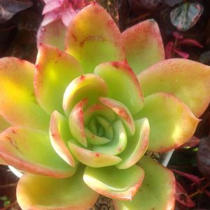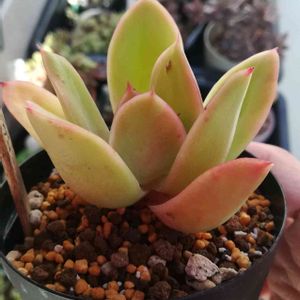 【エケベリア属 ゴールデングロウ・ゴールデングロー】 Echeveria 'Golden Glow' ×パリダ?の交配種 羽兼直行さんのエケ本には 群生すると書かれていますが、 先住ゴールデングロウ2株は オヒトリサマでしっかり茎立ち🦒 しかも、デカベリア どうしても群生株が欲しくて、 こちらを譲っていただきました 黄〜オレンジの紅葉は徐々に醒め、 緑とバイカラーになっています🧡💚 この時期の姿はまた格別ですね 丈夫 故にうちはいつも雨晒し☔ 丈夫な多肉は良い多肉(๑•̀ㅂ•́)و✧ 「パリダの交配種と思われるが、詳細は不明 紅葉すると黄色で、葉先が少しピンクになる 内側は黄色で多花 茎立ちし、基部より子を出し群生する」 ☆Source☆ 【羽兼直行】さんの著書