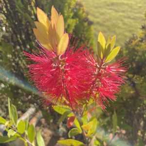 赤いブラシ完成(〃>▽<〃)✨ 弱っていたセール鉢🪴金宝樹を購入し、植え替えてから数ヶ月…。気づいたら庭でキラキラ赤いブラシが輝いていました〜!素敵なサプライズです♡ 金の宝の木(*゚▽゚ノノ゙☆