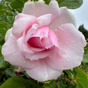 昨日咲き始めたプチトリアノン、雨の中でもう一花も 昨日のとがった感じの花びらも、優しい丸い感じに マリー・アントワネットの離宮の名前がついたバラです