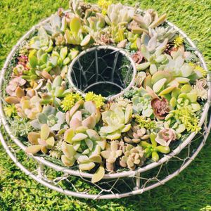 日中はまだ暑いけど、朝晩が涼しくなってきました。 ちょっと気が早いけど冬に向けて管理がしやすいように鉢を減らしてます✊ 昨日は乱れた寄せ植え達を崩して一つのリースに仕立て直しました😊 まだグリーングリーンしてます🤭
