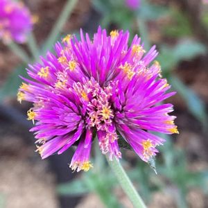 ゴンフレナ・ラブラブラブ 花言葉:「不朽」「不死」「変わらぬ愛」「色あせぬ愛」「永遠の恋」「永遠の命」「安全」。 ヒユ科ゴンフレナ(センニチコウ)属🌿一年草 センニチコウ(千日紅)の新しめの品種😊暑さに強く、連続開花性に優れ、春から晩秋まで咲く🌼🌼🌼