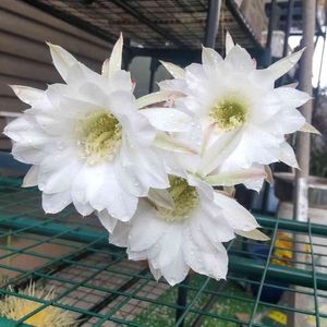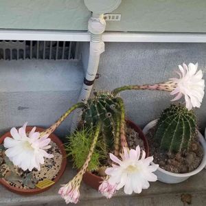 夜中なかなか咲かず、今朝3個咲いてました~☺️いい香りがしていますよ~🌸