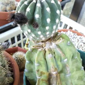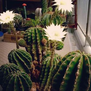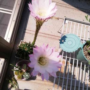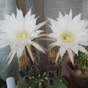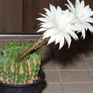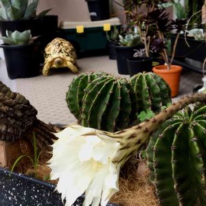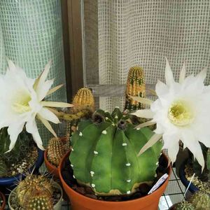 こんにちは! エキノプシス属:短毛丸 今朝一輪開花してました! 大きくていつもの所まで運べないのでハウスの中で撮影です!