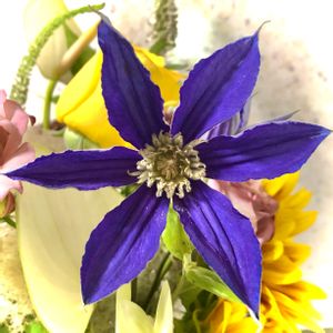 クレマチス ドゥランディ 先日のレッスンのアレンジの中の花です。 小さな蕾が開き始めて、可愛らしい釣鐘型で終わるのかと思っていたら…パッと開いで雰囲気が全く変わりました。 「おぉーっ」と、先生に種類を確認しました( ⸝⸝•ᴗ•⸝⸝ )੭⁾⁾ ……………………………… クレマチス [別名]鉄線(和名) キンポウゲ科 / センニンソウ属(クレマチス属) イギリスではバラのパートナープランツとして「つる植物の女王」の呼び名で親しまれる。 ー以上、GreenSnapよりー ……‥‥‥‥‥‥‥‥‥‥‥‥‥‥ アレンジにすると洋風ですが、竹筒や籠などに一輪で挿すと画になり茶花になりますね。 (和洋どちらもイケるなんて、二刀流の大谷くんみたいですね。今、エンジェルスの試合中継中⚾️) テッセン(鉄線)は、江戸時代に中国から日本へ伝わり、家紋になったり、日本画の画題としても昔から好まれてきました。 浴衣の柄としても素敵ですね。 風車のような花の形が日本人にとってどこか懐かしさを誘うのかもしれませんね。