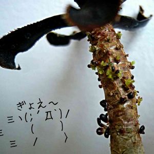 GARAMちゃん❢ これだよ~~´・∀・` 黒法師からの~ 黒風車 1枚~2枚~ってどんどん 葉っぱが抜けてこんな ハゲちゃびんになったョ~💦 ノ 彡 ノ ノ ノノ ミ 〆⌒ ヽ彡 (´・ω・`)