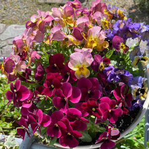 去年の暮れに私が実家に置いた寄植え💛🧡💜 私の自宅より少し暖かい気候なので、ウチのよりお花が元気で綺麗😂