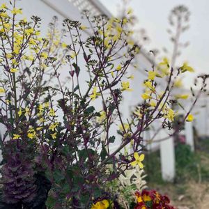 葉牡丹って皆さんどうしていますか? いつもは伸び始めるとお終いにしていましたが、今年は自由にしてみようと決めました❣️ 私の背丈と同じくらい、、。 黄色のお花も可愛い💕 踊り葉牡丹になるのかな⁉️
