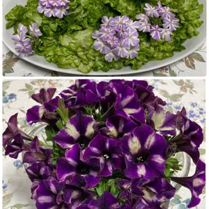 花遊び🎶 夏のお花、まずはピンチと、今年は大幅にカットしてみました。 上は、花手水にしてみたいと思ったのですが、黄緑色の八重咲きのペチュニアは、もはやサラダにしか見えません😅