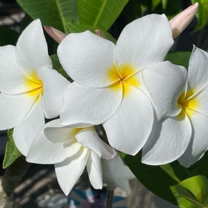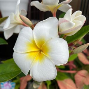 プルメリア ブリザード(Blizzard) 4年目のプルちゃん。 今年も無事に咲いてくれました。いい香り〜🥰 ❸マンデビラとテルテル3姉妹 梅雨とは言え雨続きは嫌ですね。雨のかからない所に避難🌸しました 先程 豪雨注意警報発令💦 年々降り方が尋常じゃない❗️