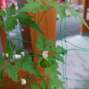 緑のカーテンになるらしいのですが、 まだ、鉢を覆う、カーテンかなぁ😊 ⭐️フウセンカズラ⭐️