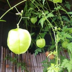 フーセンカズラの種を頂き育てて、その後はこぼれ種で毎年、困る位沢山の芽を出してくれます。気が付いたら小さなふーせんが出来ていました。