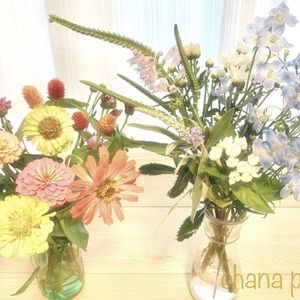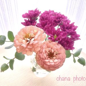 次はジニアと小菊を合わせてみましたよ❣️ 2つとも素敵な色合いで、ロマンチックな雰囲気になりました💗