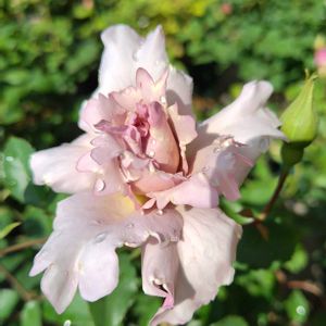 ガブリエル様ですね。いと美し。日当たり良好の場所なので花色の青みは抜けている感じでしょうか。純白の君も美しい。相変わらずのすーっと鼻奥にくる爽やかな香りがたまりません。鼻から脳に直接届く強い香り。植物タグもズレるほどの強い香り。