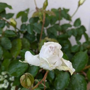 今日のバラ🌹は ガブリエル🤍 昨年暮れに調子を崩しており、ちょっと復活したところで冬の休眠中に地植えにスイッチしましたが、その影響からか?今年は色も香りもイマイチな感じがします😥 でも純白の美しさは健在です🥰 株元には、サントリーフラワーズさんのタピアン ラベンダー🪻 ガブリエルの白とタピアンの紫はよく合ってると思います♪