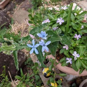 ブルースターと日々草の寄植えです。ブルースターは、切り戻しからの、再生しました。👍🦋🎶🐞🐝💞😅