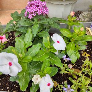 夏🌻の寄せ植え🪴より…💕 🧋つづき…🧋 ナカヨク🌼(*´▽`*)ノ🌼サイテネ 💓 金魚草 💖 ペンタス🦄✨ 💛🤍ニチニチソウ🌼 💚フォックスリー🌿タイム💕