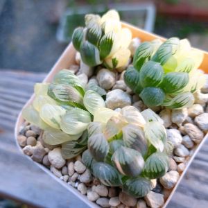 明るい日陰組の所に太陽が当たり始めた為、遮光をしています。 日が当たらない上に遮光をされている苗は弱々しくなってきています…😅 早急に見直さなければ…。 スイートオレンジ。 昨日届いたハオルチアの片割れ。 最近知った品種ですが、4個入りでオークションにかけられていました。 斑の入り方も良かったので、参加。 小さいけどこの個数なら満足です✨ 2つは根無しだったので、初めてのハオルチア根出し体験になります。 名前通りオレンジの斑が増えてくれれば嬉しいです😁