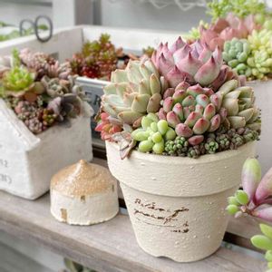 多肉植物の寄せ植え😊 今までおひとり様で育ててこや発根待ちさせてた苗を使って、私的贅沢寄せ✨✨✨ 今までエケベリアなんかは大きくさせればさせるほどいい‼️って思ってたけど、思い切って寄せ植え👍夏越しの置き場所は限られているから鉢減らしも兼ねて。 やっぱり寄せ植え好きだぁーーー🤩 タグがなくなると名前が分からなくなるので備忘録。 おばあちゃんも素敵だやぁって褒めてくれた❤️