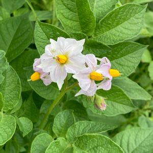 おはようございます! ジャガイモ❣️ 葉っぱさんに守られてゆったり〜🥰 🤔ワルナスビのお花に似てますね!同じナス科なんだ!😯 『いいね』コメントありがとうございます 😊🙏 今日も頑張りましょう!