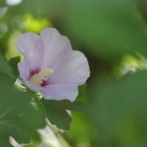 低木に可憐な白いお花が咲いていましたが何のお花でしょう❓😊💓🎶 GSのAI検索でバイカウツギと回答が出ましたが、半八重のムクゲの様です😅 🏷️木曜日は木に咲く花に参加させて頂きます🥰