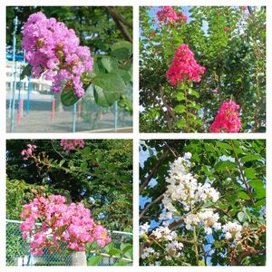小学校の前の道路沿い。四色のカラフルな百日紅の並木道を通るのが、夏の楽しみです🤍❤💗💜