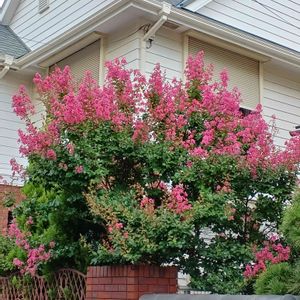ご近所の白いおうちの百日紅。 ピンクが似合いますね💞