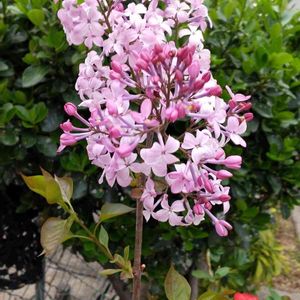 ご近所で、木瓜の上にライラックが咲いていました💞