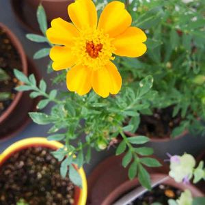 おはようございます✨ 最低気温21℃ 最高気温26℃ くもり後雨 マリーゴールド・バンビーノ🧡 一重咲きでかわいい小さなお花 ユーフォルビア・ゴールデンレインボーは昨年戸外で越冬… 何種類も植えたユーフォルビアの中でも一番元気に育っています💚 雨で庭の草木がしっとりと輝いています🌿 熱中症にご注意くださいね😊