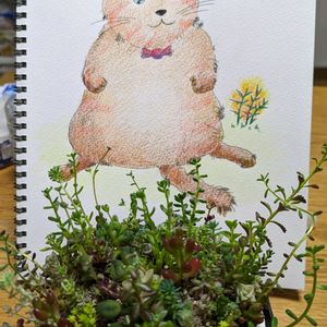 ホヤマチルダ仲間入り🪴 随分前から気になってたマチルダさん🟢 今回出逢ってしまったので連れ帰り〜💨 早速植え替え (根付いてくれよ!) 定位置も決まったよ💕 ウチ限定の地域猫どんちゃん😺 もうウチの子になる❓🤣