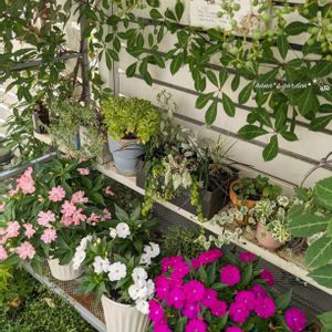 サンパティオ モニター報告 ①ホワイト 横から見ると下の葉があまりない状態。気がついたら、こうなってました。でも、風通しは良さそう。 ②ブラッシュピンク 下の葉ももっさり。風通し悪い? ③パープル 下の葉はもっさり気味。 しばらく与えてなかった液肥を与えたら、花が少なかったブラッシュピンクを含め、ホワイトもパープルも花つきが更に良くなった気がします。 液肥も大事なんですね