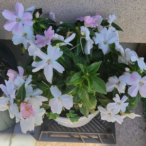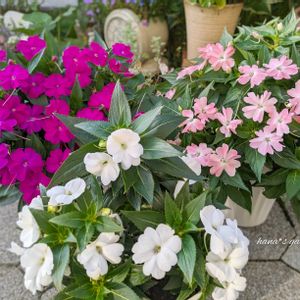 サンパティオモニター報告𓂃𓂂ꕤ*.゚ 毎日暑い日が続いていますが、サンパティオはみんな元気に綺麗に咲いてくれてます。 花柄を取らないと、汚くなってしまうので、水遣りと花柄取り、たまに液肥と、だけ気をつけていますが、あとはそのままで、どんどん咲いてくれてます。 個人的に白が純白で綺麗で、一番気に入ってます。 ブラッシュピンクが一番株が大きく、このあと少し切り戻しました。 まだまだ咲き続きそうで、これからも楽しみです。