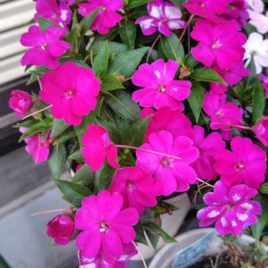 おはよーございます♪🤗 サンパティオ🌸9号鉢に盛り盛り 目を引くパープルカラーです🩷🩷 紆余曲折ありましたが、当選から4ヶ月、咲き誇っています🌸🌸🌸