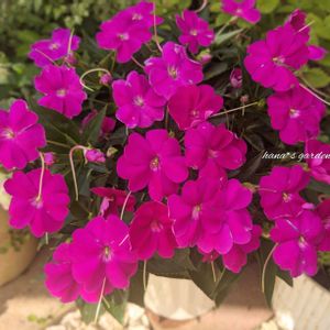 サンパティオモニター報告𓂃𓂂ꕤ*.゚ 本当に暑い毎日ですが、サンパティオ達は元気です🍀*゜ ①-④満開に近いぐらいたくさん咲いていましたが、少し前からお花はお休み状態でした。 2.3日前からお花がまた咲き始めました。 蕾もたくさんあるようなので、咲くパワーを溜め込んでいたみたいです。 ピンクはとにかく株がすごく大きくなっていて、パープルより場所をとっていますね。 もう少し大きくなったら切り戻しした方がいいかな? ⑤ホワイトはまだお休み中です。 他の二つより日陰時間が長い場所に置いてるせいかな? でも、しっかり蕾が上がってきています。 どの株も休みながらパワーを溜め込んでいそうなので、これからがますます楽しみです。 こんなに暑いのに元気なサンパティオ達にびっくりです。 置き場所はパープルとピンクは南側のあまり長く日に当たらないところに。ホワイトは木の下の半日陰においています。 1週間〜10日に一度液肥をあげています。最近は暑さ対策で竹酢液や活力剤を薄めたものもたまにあげています。